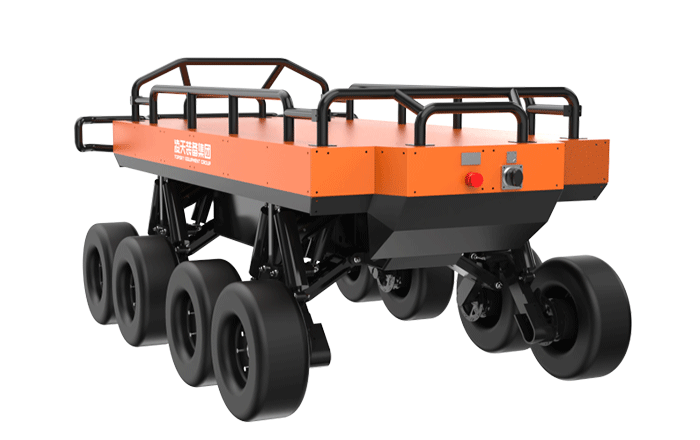 為應對野外山地、叢林、泥濘等非結構化地形,采用8輪與獨立懸掛的輪式底盤,平穩適配崎嶇場地,穩定穿越 陡坡、臺階、沙石地等,彌補輪式機器人在復雜地形的短板。同時可在 - 20℃至 50℃的寬溫區間穩定作業。
