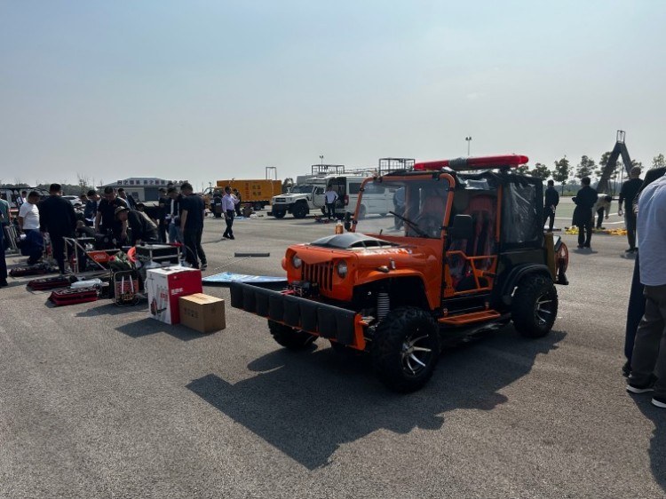 車身覆有防火阻燃材料,車輛采用半封閉式設計,具備防翻滾結構。