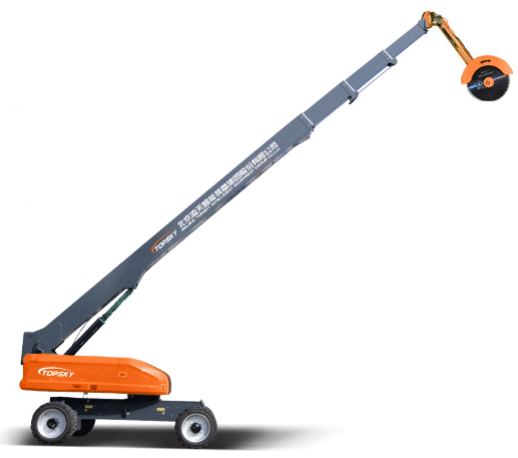 用于井口著火狀態下切割損毀的井口裝置,臂架配備冷卻噴淋裝置、切割機構,臂長≥40m,無線遙控距離≥1000m。