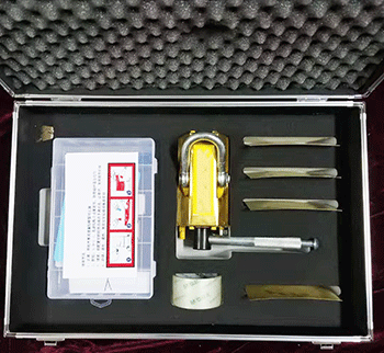 表面采用防爆鋁青銅材質,內部利用超強永磁體對鋼鐵容器的吸附力,通過操縱手柄控制工作面上的磁通量,吸住泄漏的有磁金屬表面,達到工具和泄漏本體之間的壓合和釋放。仿形壓片,是在墊在磁壓堵漏器本體與泄漏口之間的薄板,用它可彌補二者之間的空隙,減小磁阻,改善堵漏膠的分布狀態??焖俣侣┠z調均勻后堆向泄漏口,同時扳動通磁手柄,可阻止內壓液體流出,讓膠體有時間凝固,數分鐘內膠固化后,堵漏即告完成。堵漏膠和密封劑能承受水、油、液化氣、30%硫酸、30%鹽酸、氫氧化鈉、飽和氯化鈉溶液的侵蝕。