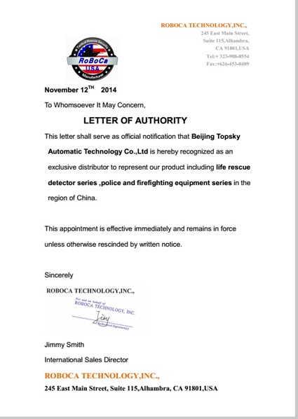 2014年8月26日,北京凌天成為美國ROBOCA(理諾)公司戰術警用裝備與救援裝備總代理
