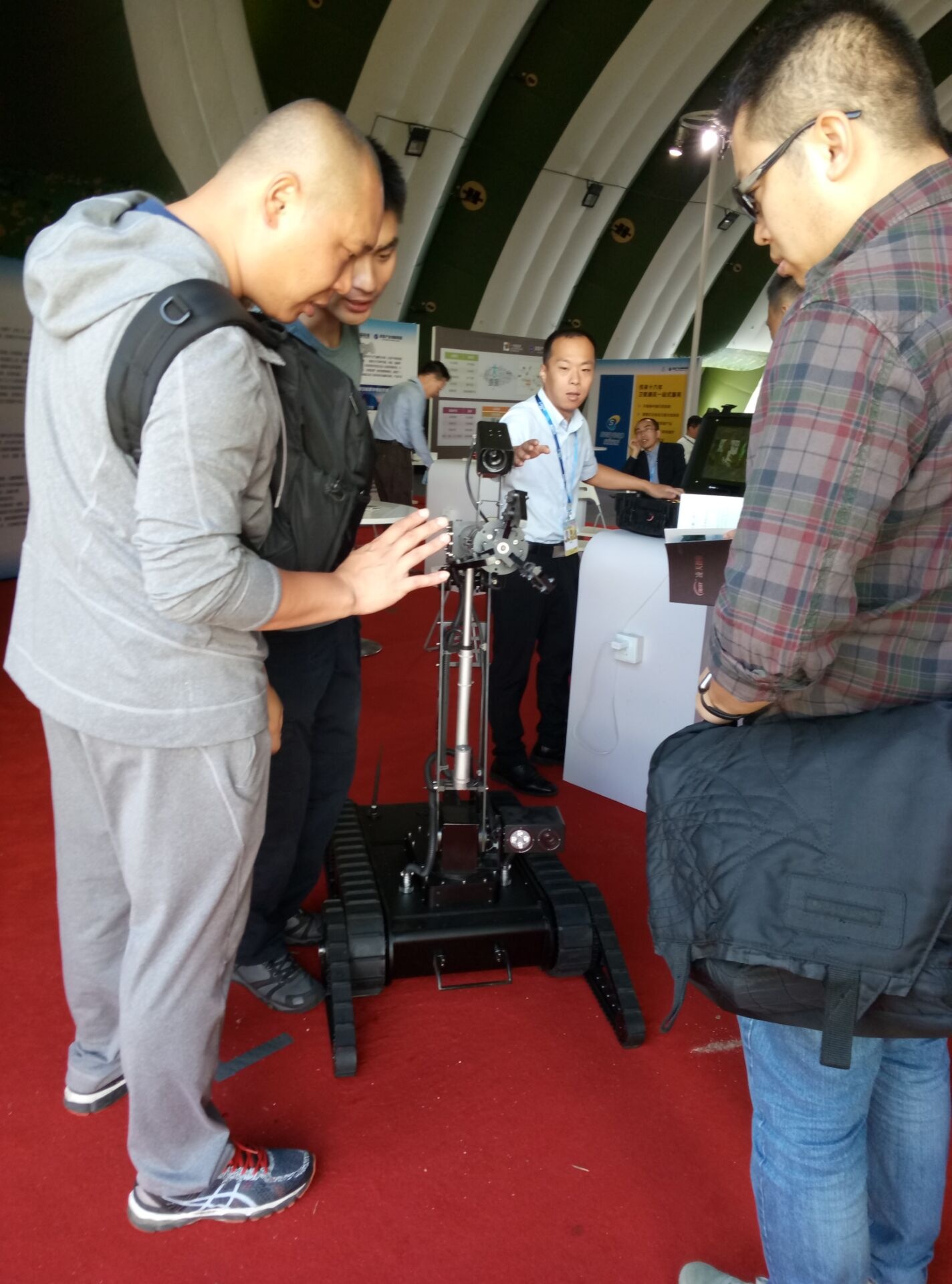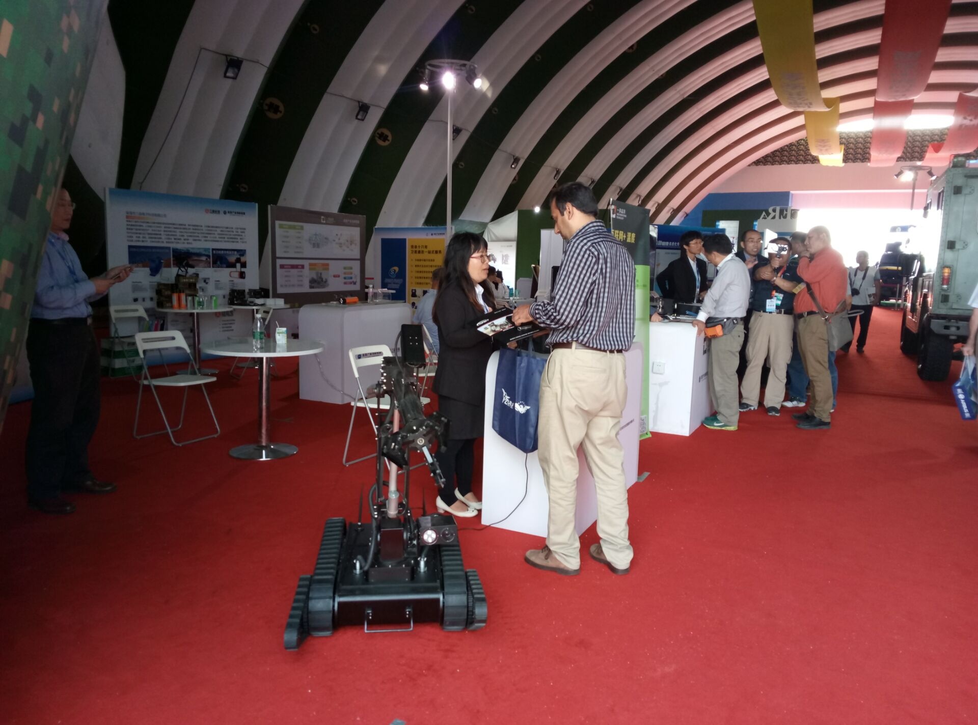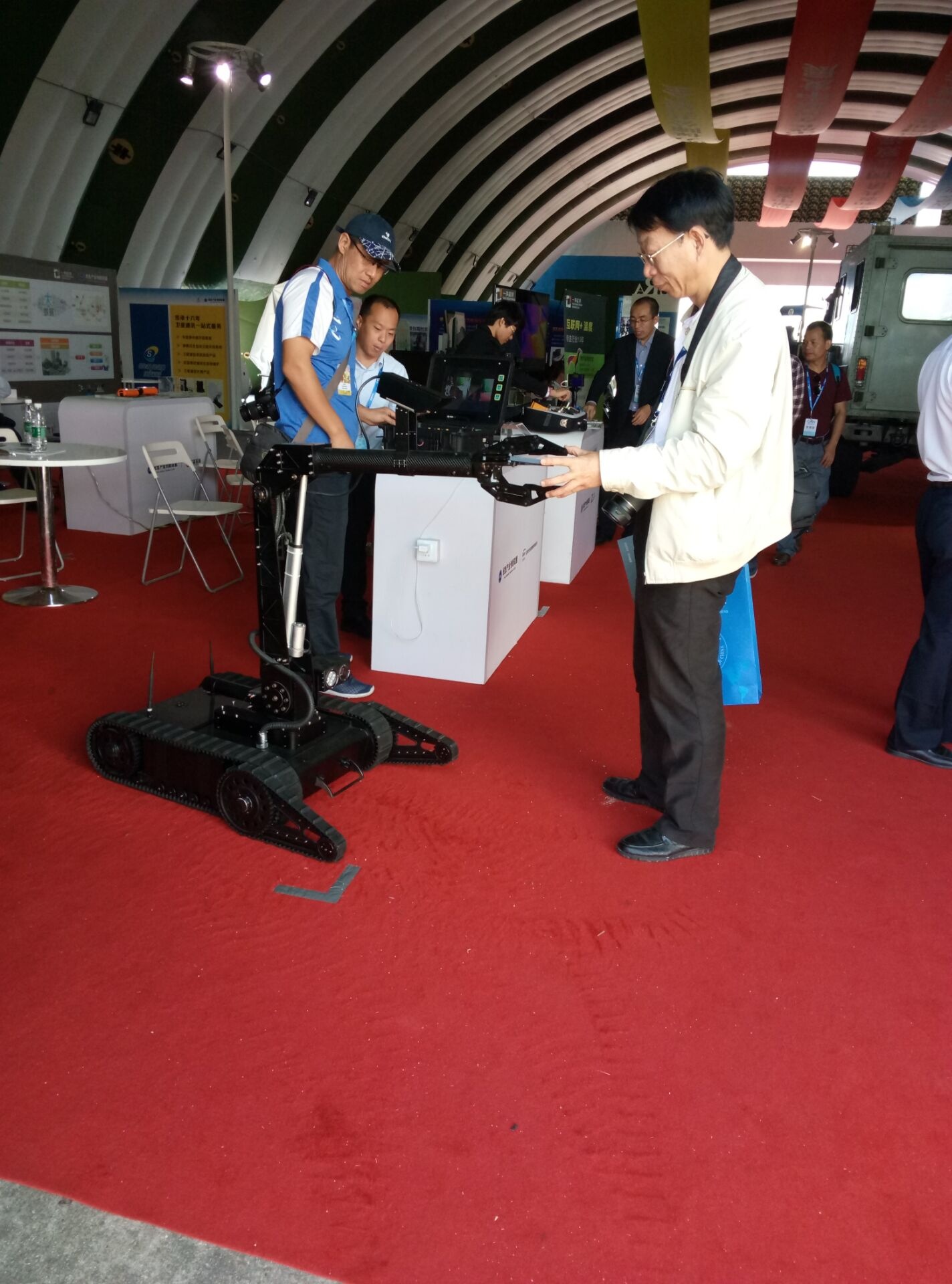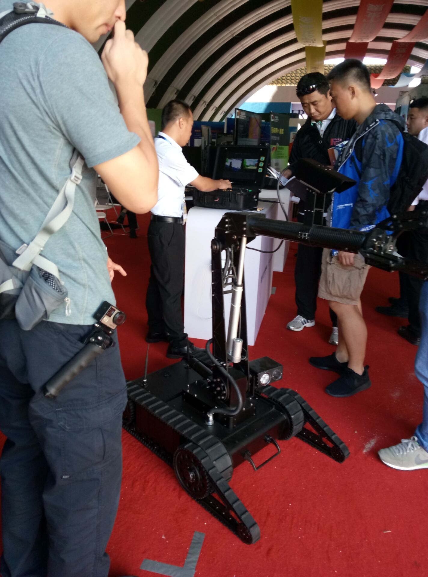 北京凌天自主研發的ER3排爆機器人首次亮相了本屆航展,該款機器人是一款小型模塊化排爆機器人,可用作武裝偵查、排爆、搭載槍械及小型發射武器等作業。