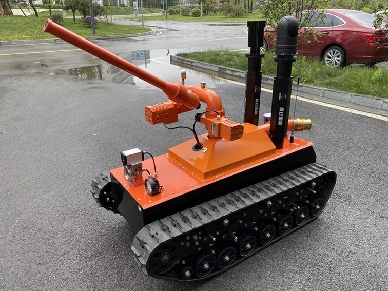 消防干粉滅火機(jī)器人作為特噴射種機(jī)器人的一種,采用鋰電池電源作為動(dòng)力電源,使用無(wú)線遙控的方式遠(yuǎn)距離操控粉劑物料機(jī)器人,能夠與粉劑物料車(chē)連接,通過(guò)噴射粉劑進(jìn)行滅火等作業(yè)。可使用于各種大型石油化工企業(yè),隧道、地鐵等不斷增多,油品燃?xì)狻⒍練庑孤┍ā⑺淼馈⒌罔F坍塌等災(zāi)害隱患多發(fā)地,滅火機(jī)器人在搶險(xiǎn)救援中發(fā)揮舉足輕重的作用,主要替代消防員在危化火場(chǎng)或濃煙火災(zāi)現(xiàn)場(chǎng)救援的專用設(shè)備