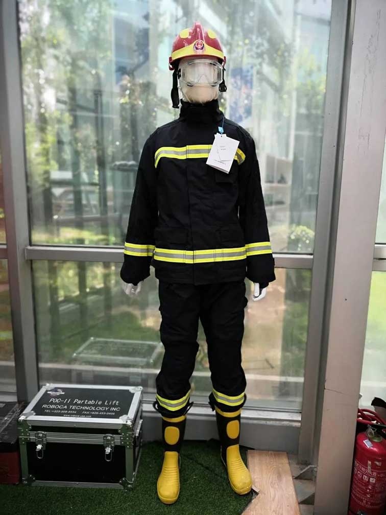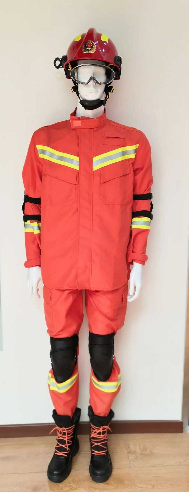 消防員搶險救援防護服用于建筑物倒塌、狹窄空間及攀登等救援現場的身體防護,采用國際上通用的結構形式,使用國外引進的紡紗、織造、縫紉和檢測設備,用先進的紡織、整理工藝加工而成。
