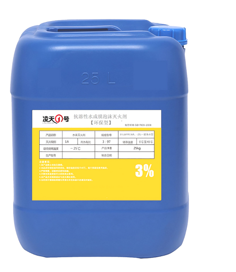 該滅火劑的各項性能指標符合GB15308-2006《水成膜泡沫滅火劑》的要求。按與水體積混合比分為3%AFFF (3: 97)和6%AFFF(6:94)兩種。該滅火劑通過比例混合經泡沫產生裝置可以均勻細膩的泡沫。該滅火劑是目前低倍數泡沫滅火劑中滅火效率最高、滅火速度最快的一-種滅火劑,它具有多種使用形式,可以適用于各種低倍數泡沫產生系統和泡沫滅火器中使用,經國家權威部門檢測對人體無毒無刺激,腐蝕性低,該滅火劑不但徹底解決了環境污染問題而且儲存期長等特點。