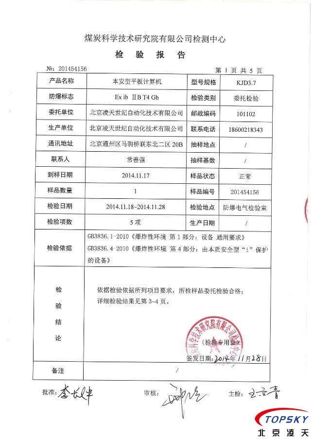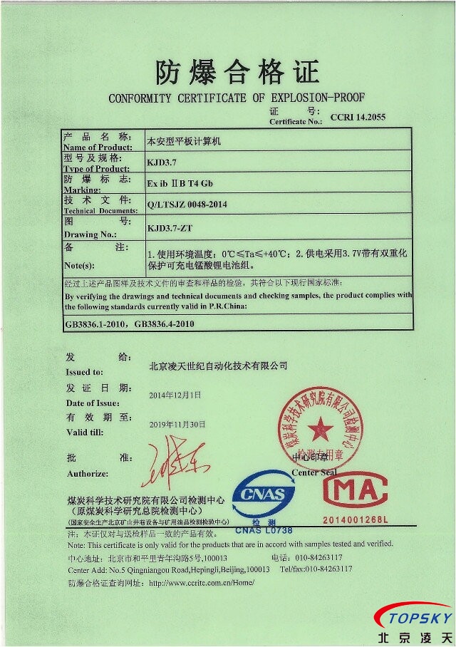 【云安通】KJD3.7防爆移動執法終端(本安平板計算機) 技術完成單位:北京凌天世紀自動化技術有限公司 |