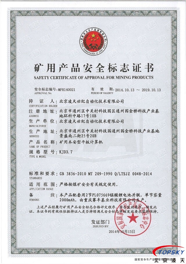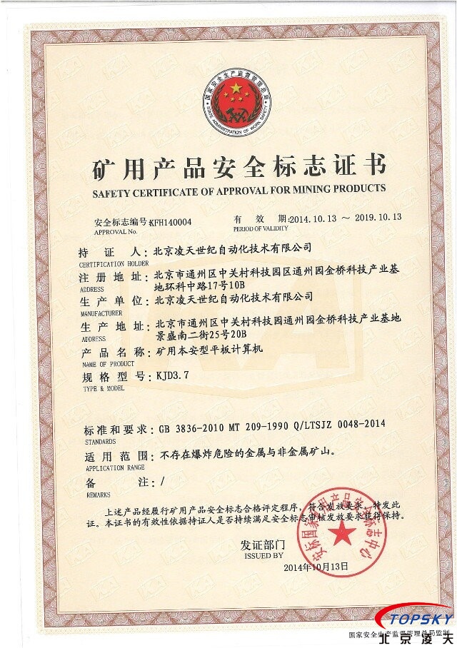 1)★認證:煤安認證、非煤礦山安標認證、防爆認證