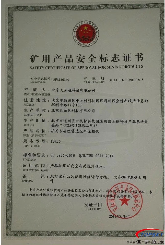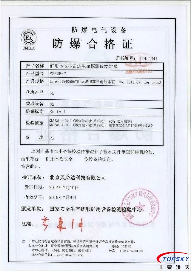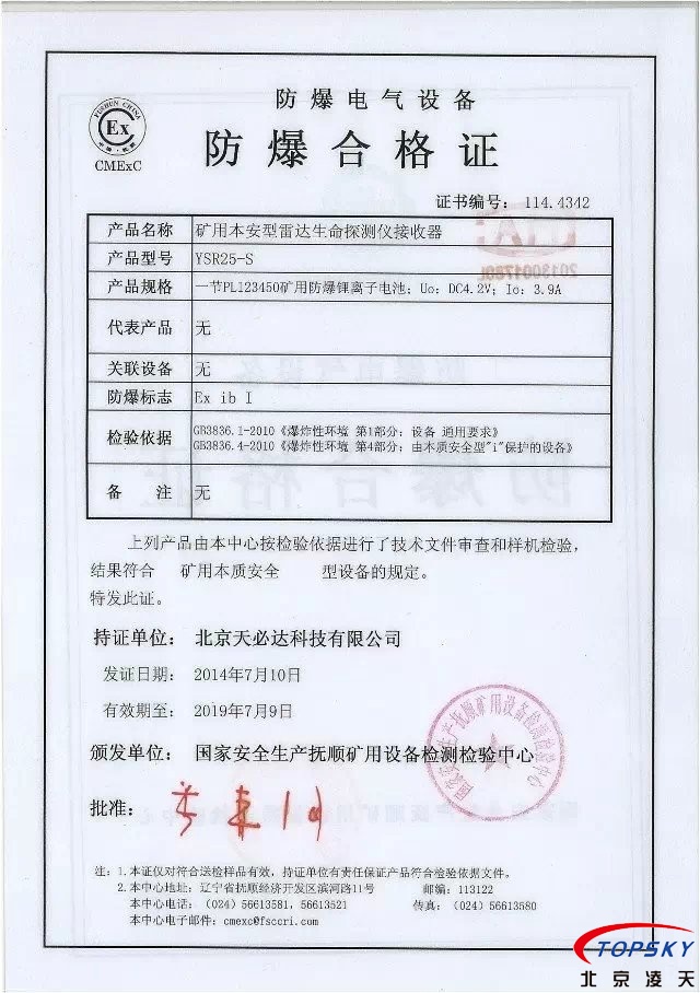 從國(guó)家安標(biāo)中心獲悉,YSR25本安型雷達(dá)生命探測(cè)儀取得煤安標(biāo)志認(rèn)證(證書見下圖),自此,國(guó)內(nèi)本安型可用于爆炸性環(huán)境的探人雷達(dá)取得完整下井資質(zhì),從研制方獲悉,該設(shè)備已在山西陽(yáng)泉煤業(yè)集團(tuán)救護(hù)大隊(duì)、山西潞安集團(tuán)救護(hù)大隊(duì)、開灤集團(tuán)救護(hù)大隊(duì)進(jìn)行過(guò)工業(yè)性試驗(yàn),試驗(yàn)效果良好,探測(cè)距離達(dá)到25米(報(bào)告見下圖)!