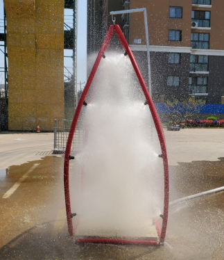 簡易洗消噴淋器適用于部隊戰士進行化學事故處理后,在極端惡劣的環境下的臨時應急洗消、消毒的可折疊有效的簡易裝置。該裝置整體設計合理、安全,適合在狹小的空間或野外使用,可以利用周邊環境,對其進行吊裝固定。外部水源通過水帶接入,形成回路,水通過水帶上的噴嘴噴射到人體上,形成環形包圍立體包裹,進行臨時的應急洗消的作用。水壓可根據進水的高低噴射的效果會不同,對人員服裝或體表進行洗