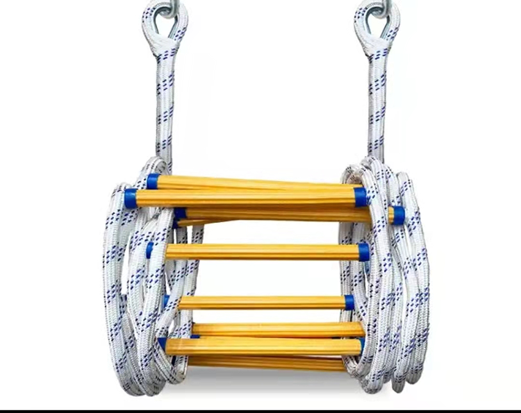 救生軟梯是一種用于營救和撤離火場被困人員的移動式梯子,可收藏在包裝袋內,在樓房建筑物發生火災或意外事故時,樓梯通道被封閉的危急情況下,是進行救生用的有效工具。