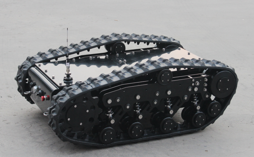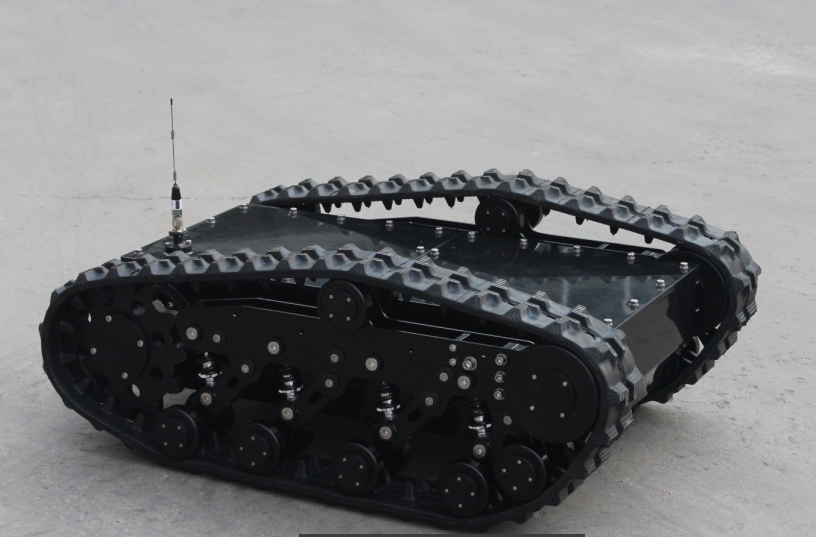開發空間大、行駛更加平穩。是一款通用型履帶式機器人底盤車,整車采用克里斯蒂獨立懸掛設計,更好的做到重載避震。內部搭載高扭矩減速電機,為底盤提供強勁動力,迎難而上。精準的底盤高度搭配合理功率的電機,使得該車型具有低重心,通過性強、重載避震運行平穩等優點,廣泛用于復雜環境下的機器人移動解決方案。
