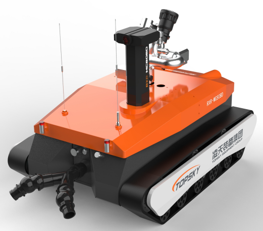 RXR-MC80BD防爆消防滅火偵察機器人作為特種機器人的一種,采用鋰電池電源作為動力源,使用無線遙控的方式遠距離操控消防滅火機器人??墒褂糜诟鞣N大型石油化工企業,隧道、地鐵等不斷增多的油品燃氣、毒氣泄漏爆炸、隧道、地鐵坍塌等災害隱患多發地,滅火機器人在搶險救援中發揮舉足輕重的作用,主要替代消防員在?;饒龌驖鉄熁馂默F場救援的專用設備。本產品具備滅火、音視頻偵察、有毒有害氣體偵察、災區環境偵察功能。