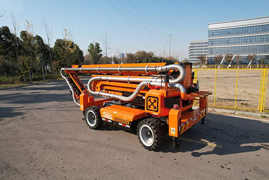 具有液壓調平支腿,臂架作業(yè)時保證整機水平,防止發(fā)生傾翻,以及支腿安全報警,車體傾斜報警,舉升避障、舉升限制、上下互鎖、風速報警等安全保護功能,進一步提升機器人舉高噴射作業(yè)安全性。
