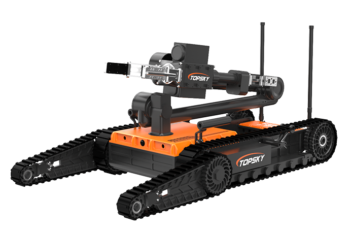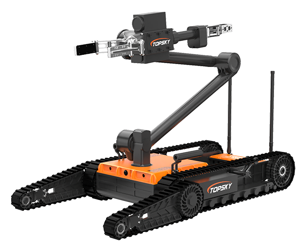 排爆機器人主要是用來處理爆炸物相關工作的排爆式機器人,也可用于偵察人難以達到的地形的一種機器人。7自由度排爆機械手能實現不同角度旋轉,近端最大可抓舉16KG的重物,小手爪可抓取3KG重物,機械臂可裝載爆炸物銷毀器,可現場摧毀爆炸物,底盤采用履帶+單擺臂結構,能適應各種地形快速作戰部署。同時機器人配備有線控制可以網絡干擾情況下通過有線遠距離作業。排爆機器人可與配件一同使用,包括銷毀器(例如29mm),爆炸物的遠程引爆控制系統等。