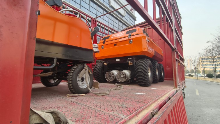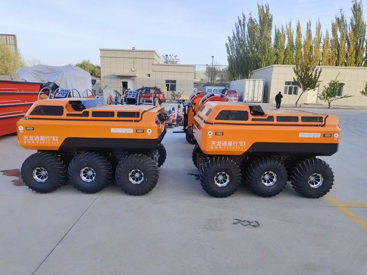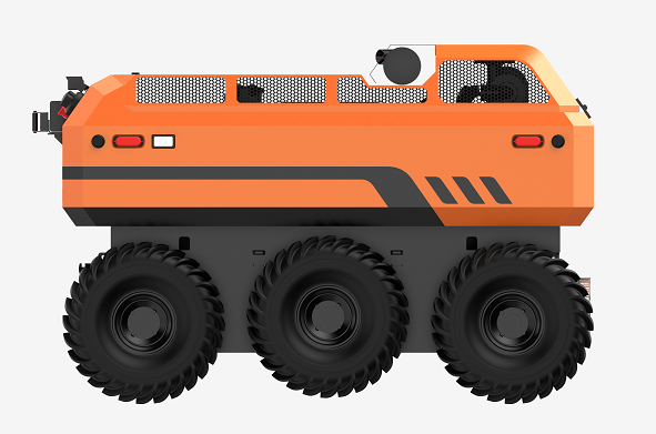 采用6×6輪式底盤(pán),液壓驅(qū)動(dòng),裝有真空輪胎,另加配水下推進(jìn)器,增加水中行進(jìn)效率,水陸兩棲,可全地形行駛;