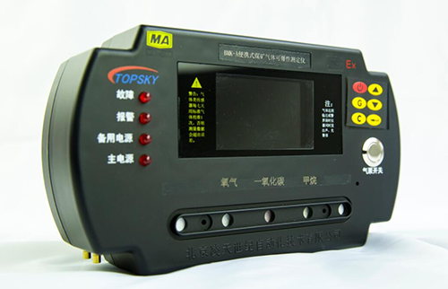 BMK-A便攜式煤礦氣體可爆性測(cè)定儀(以下簡(jiǎn)稱測(cè)爆儀),是用于煤礦井下使用的礦用本安兼隔爆型攜帶式儀器。測(cè)爆儀用于煤礦井下,由礦山救護(hù)隊(duì)員攜帶進(jìn)入災(zāi)區(qū),監(jiān)視作業(yè)環(huán)境周圍氣體組份是否存在爆炸危險(xiǎn)。也可由消火人員攜帶,在處理自然發(fā)火或啟封火區(qū)過(guò)程中,檢測(cè)周圍環(huán)境或密閉內(nèi)空氣中甲烷、氧的濃度值,在儀器液晶顯示屏上直接顯示出O2、CH4、CO的濃度值和環(huán)境溫度值,并顯示出“爆炸三角形”的圖形及各氣體組份所構(gòu)成的坐標(biāo)點(diǎn),臨近或達(dá)到警界限時(shí)儀器同時(shí)發(fā)出聲、光警報(bào)。