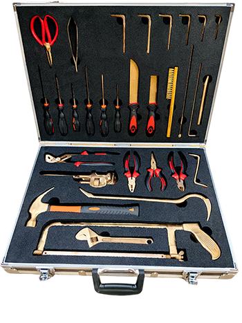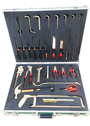 NMT-WA03型號無磁排爆工具組通常為36件套。工具由鈹青銅合金制成,裝在堅固的硬質箱體內,箱內有四個可拆卸嵌體,便于工具的分類存放與攜帶。