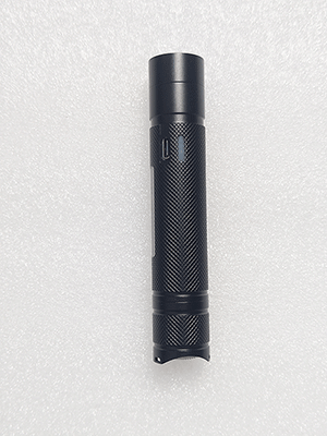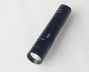 直筒圓柱形結(jié)構(gòu),尾部開(kāi)關(guān)具有方位燈功能;光源采用LED光源,具備強(qiáng)光、弱光、爆閃光可切換功能。