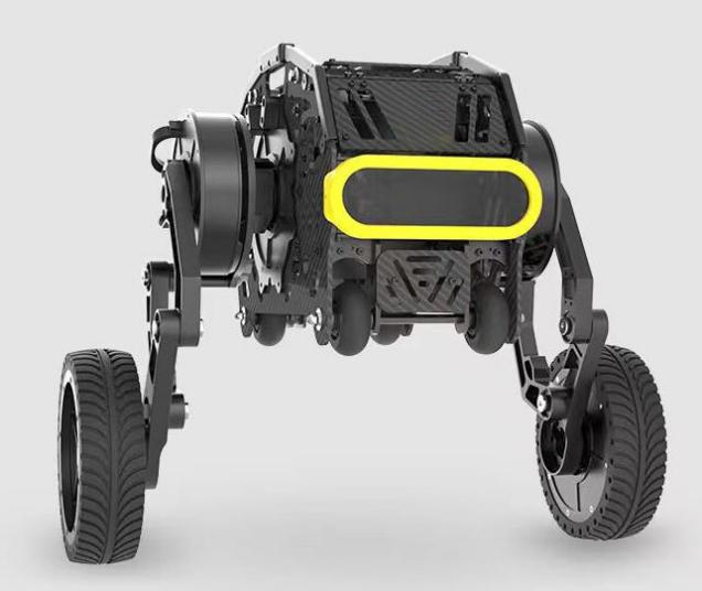 本款雙足機器人是一種足部裝有動力輪子的雙足平衡式移動機器人。這臺機器人可以將輪式機器人的速度優(yōu)勢,和足式機器人的機動越障性能結(jié)合,可以在多地形下高效、靈活的運動。這種機器人也是當下學術研究的熱點。機器人的腿部和機體結(jié)構(gòu)由本末科技自主研發(fā)設計,總共由六個直驅(qū)型關節(jié)電機M1502D驅(qū)動。