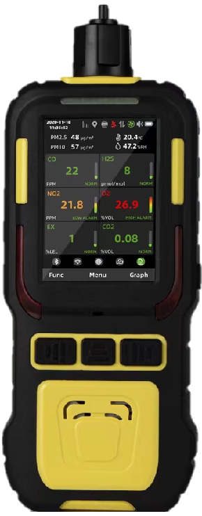 無線復(fù)合氣體探測儀(以下簡稱探測儀)支持二十多種智能氣體傳感器,可同時(shí)連續(xù)檢測5種氣體的濃度(氣體種類可自由組合系統(tǒng)智能識(shí)別)、粉塵濃度(PM2.5、PM10)、核輻射、溫濕度。將采集到的氣體數(shù)據(jù)、GPS位置、粉塵濃度、核輻射、溫濕度等數(shù)據(jù)通過4G上傳至監(jiān)管后臺(tái)實(shí)現(xiàn)無線管理;探測儀也可以實(shí)現(xiàn)現(xiàn)場實(shí)時(shí)數(shù)據(jù)一鍵打印功能。探測儀具有氣體濃度調(diào)校標(biāo)定、濃度值超限報(bào)警功能、STEL超限報(bào)警和TWA超限報(bào)警,一旦設(shè)備采集數(shù)據(jù)濃度值超限,設(shè)備立即開啟聲光振動(dòng)報(bào)警進(jìn)行警示,并將此時(shí)數(shù)據(jù)同步上傳至平臺(tái)。可將多臺(tái)探測儀的監(jiān)測、監(jiān)控信息上傳,并建立特殊作業(yè)場所多功能監(jiān)測監(jiān)控系統(tǒng)平臺(tái),保障作業(yè)人員的安全。采用新一代主流外觀設(shè)計(jì),美觀耐用。