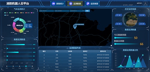 消防機器人云平臺集機器人分布、機器人統計、視頻、氣體、語音、控制等集成于一體,做到全局把控、機器人監測、全生命周期綜合使用及可視化操作。當遇到突發事件時,能在線直觀的分析并高效的了解到設備實時狀態。