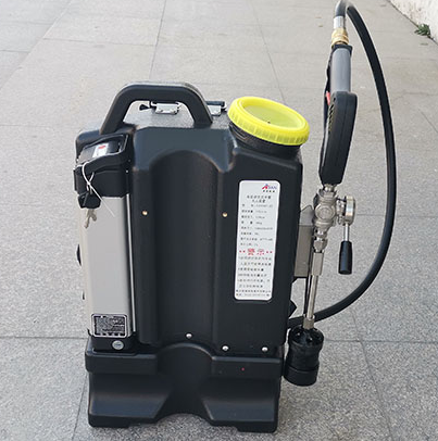4、連接軟管的爆破壓力大于額定工作壓力的2倍;儲液桶體上帶有固定把手,方便細水霧的提攜和使用,電池采用可循環使用的分離充電式。