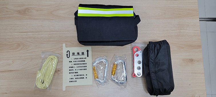 多功能繩包具有阻燃和防水的特點,還可拆卸充當墻角護墊和繩索護套使用,可提高繩索使用的安全性,安全繩具有阻燃、耐高溫、強度高、重量輕等特點并帶有清晰的反光標識,配合輕質高強度鋁合金的安全鉤、下降器使用,使逃生人員、消防員可以快速完成逃生自救。