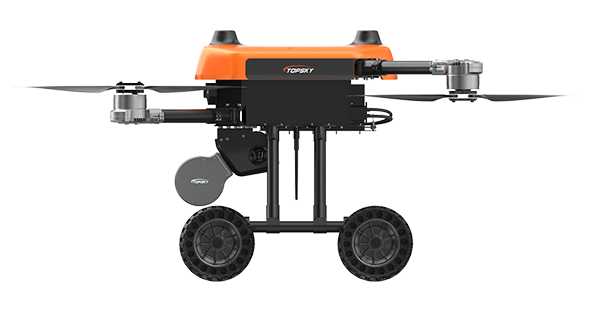 本無人機為北京凌天智能裝備集團研發的陸空兩棲三維偵測建模無人機,采用四旋翼機身設計,載重大,續航長,并且機體折疊標準化負載接口。同時,該無人機具備陸空兩棲功能,可以在地面行駛。