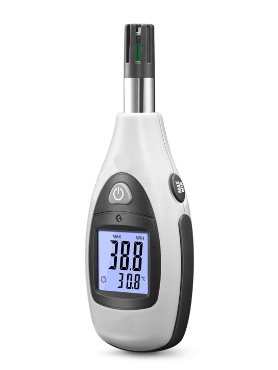 本產(chǎn)品具有小巧便攜、高對比度帶感應(yīng)背光LCD顯示屏、舒適手持感等特征;全新低功耗芯片設(shè)計,輔以科學算法,快捷精準的測量空氣溫度和濕度。