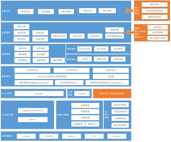 通過虛擬仿真技術、數字化技術等手段,建立一個與現實一致的三維實景數字空間,基于實景化的數字空間,開展基于一張圖的數字化預案制作、戰例復盤、多人協同演練、推演會商、事故調查等應用。